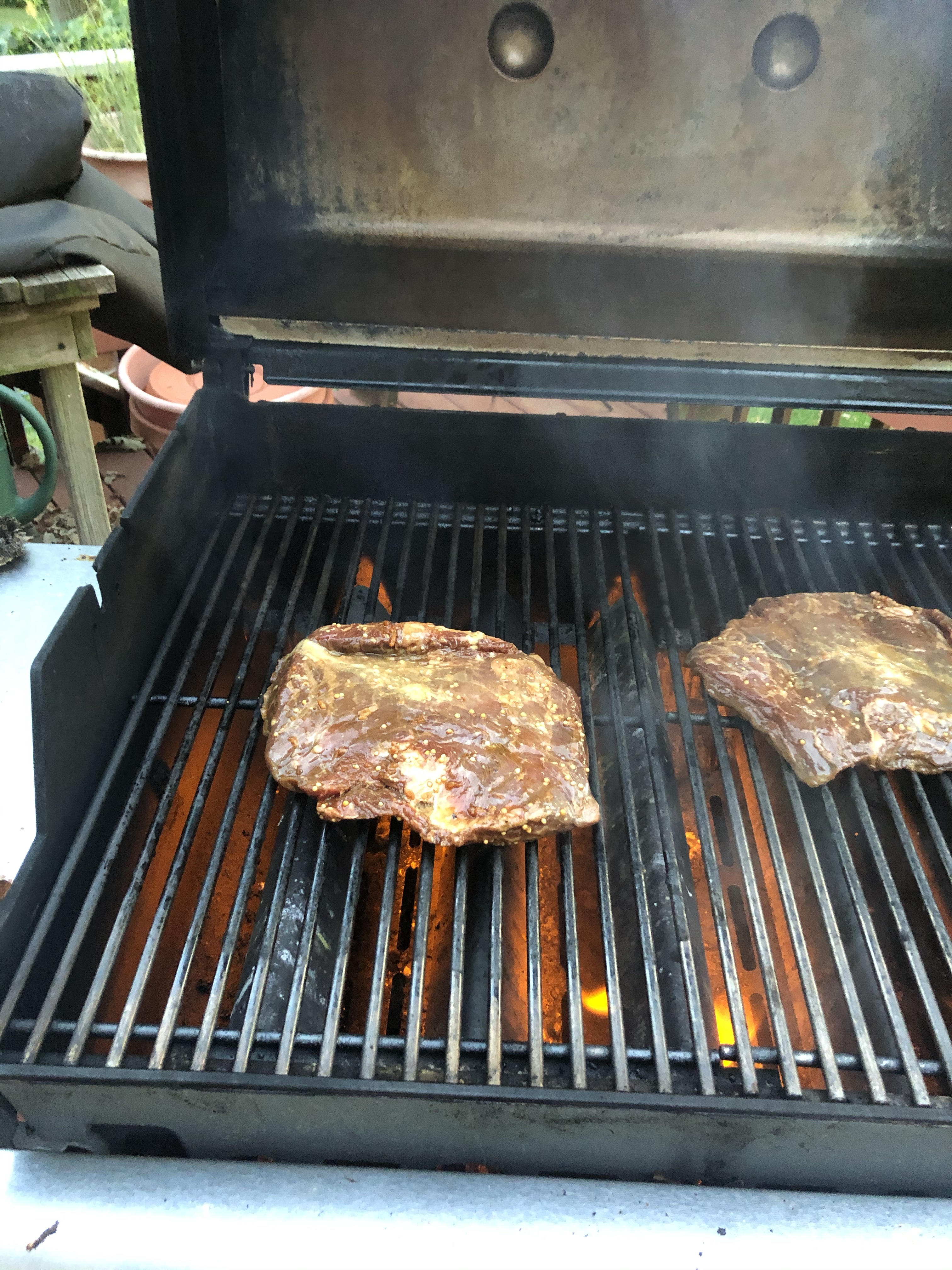 Oh – and I AGAIN forgot to marinate the flank steak. So my hubby took care of it early in the morning. We should get at least 8 hours in.