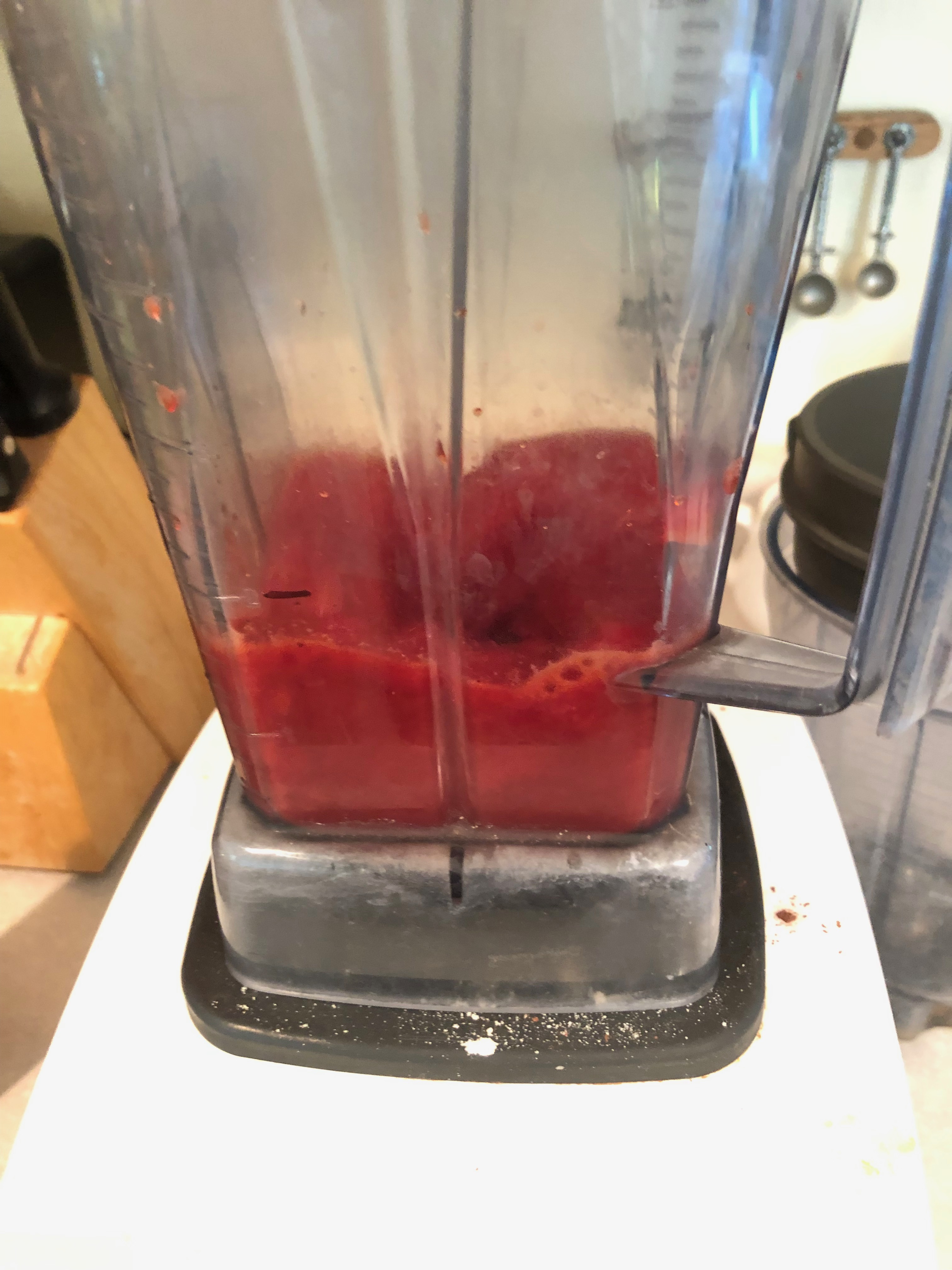 Same Directions as above but instead of Cocoa, add 1.5 C Fresh Strawberries. If you use Frozen Strawberries, make sure you thaw first. Also, do not use the whole milk. Reduce the Honey to 2 Tbsp. The nutrition label Below should include fiber, since I used real strawberries. Look at that color! Lots of Phytonutrients.