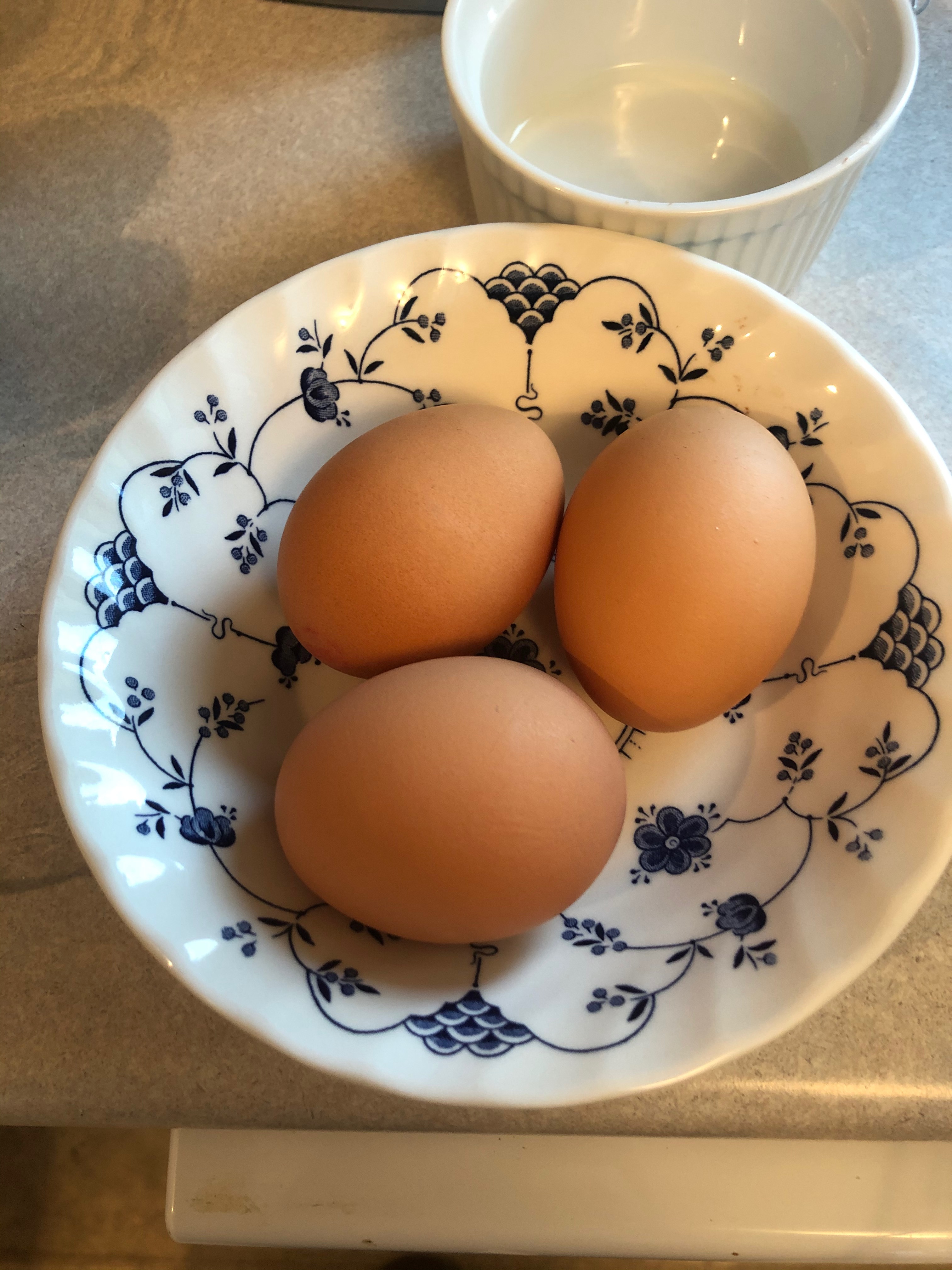 I usually wash the eggs first. These often have stains from the chicken coop if you know what I mean.