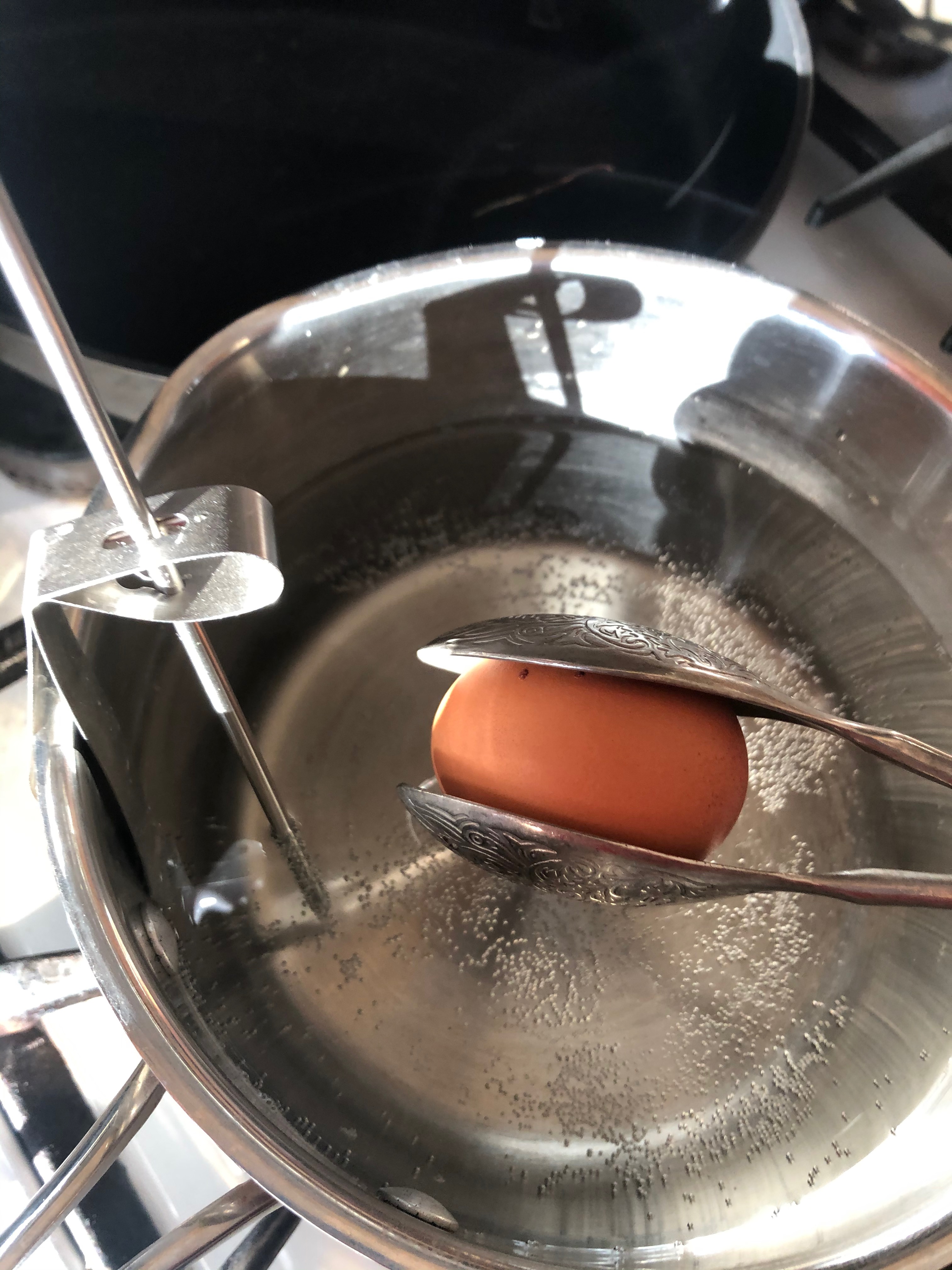 The temp should stay at 140 for 5 minutes. Then remove the eggs and run under cold water to stop the heating process.