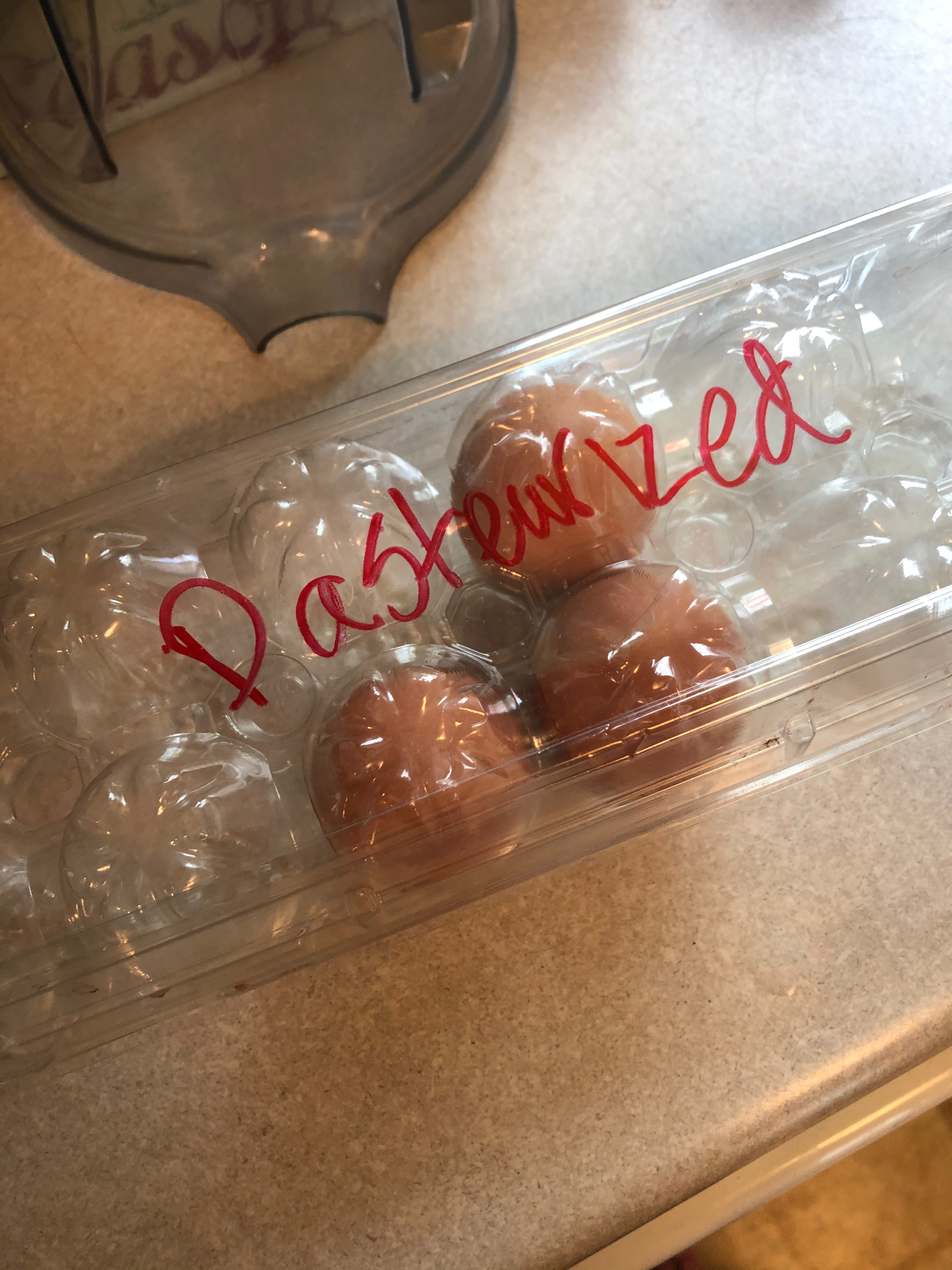 I put them back in the fridge with the package marked pasteurized.